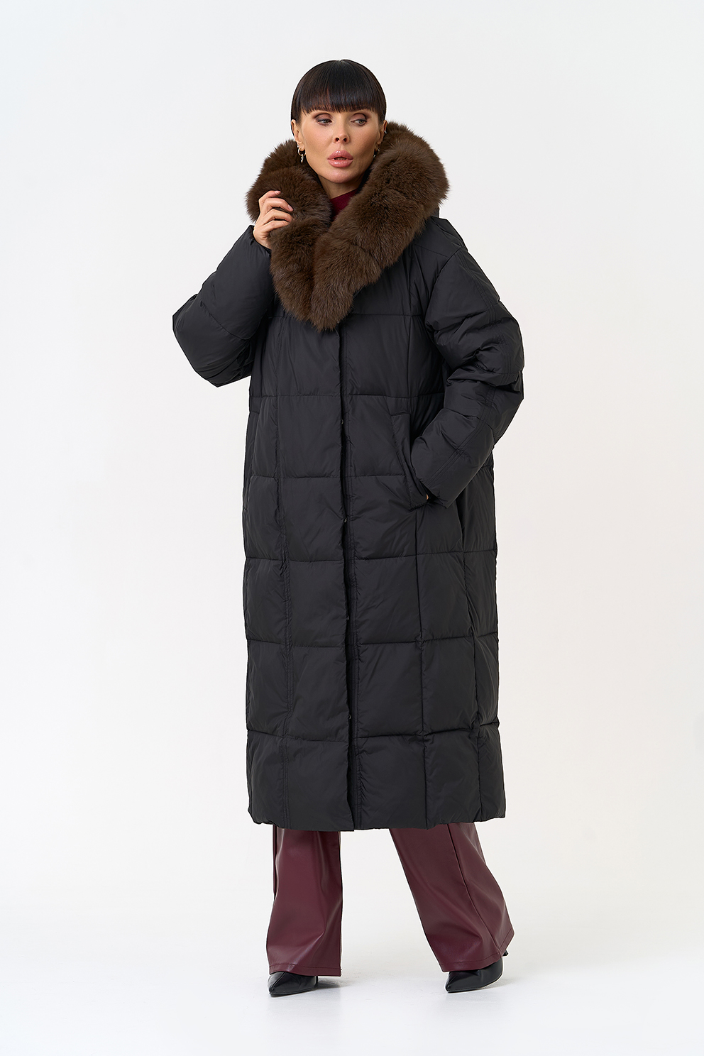 Отделка воротника - песец, цвет коричневый