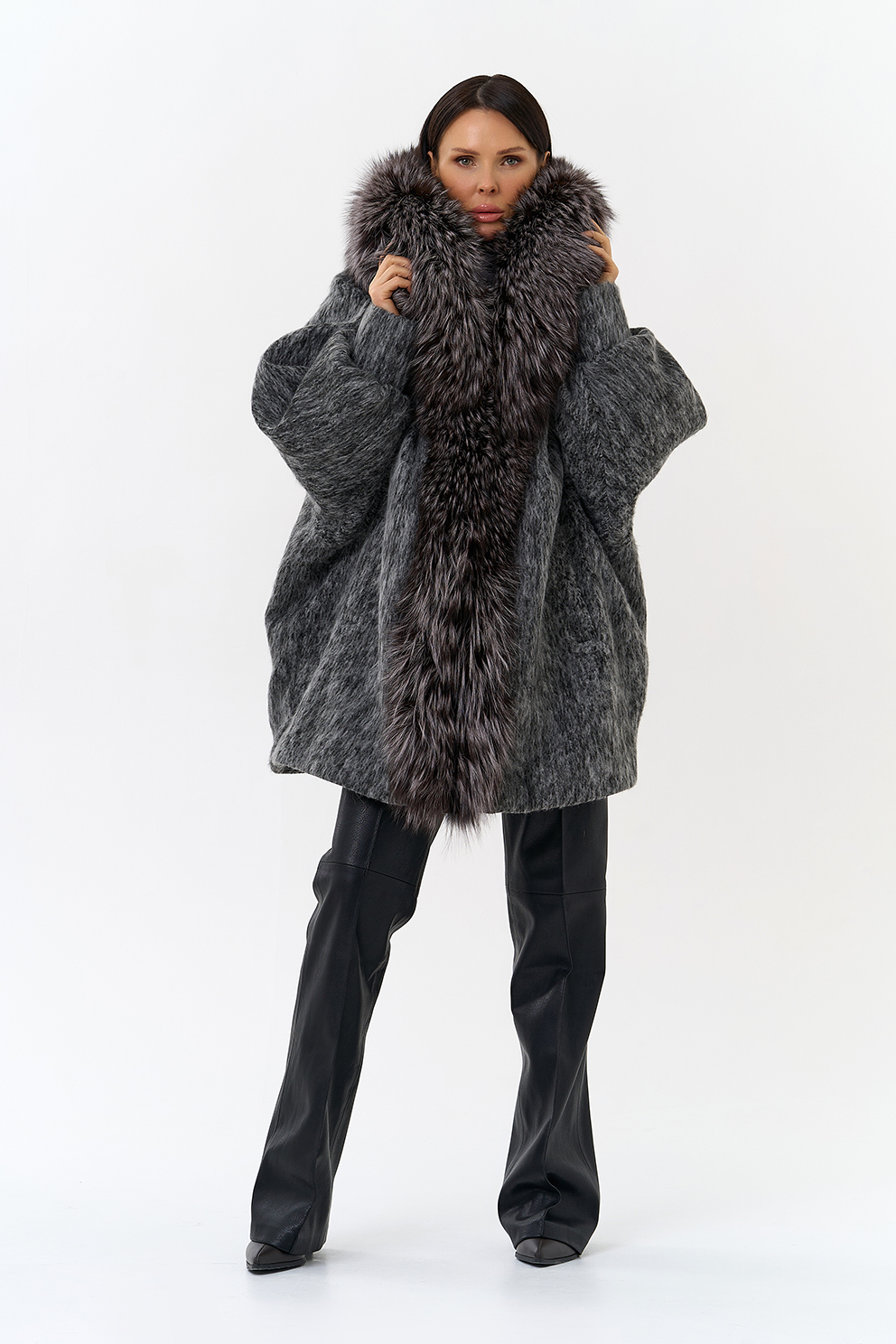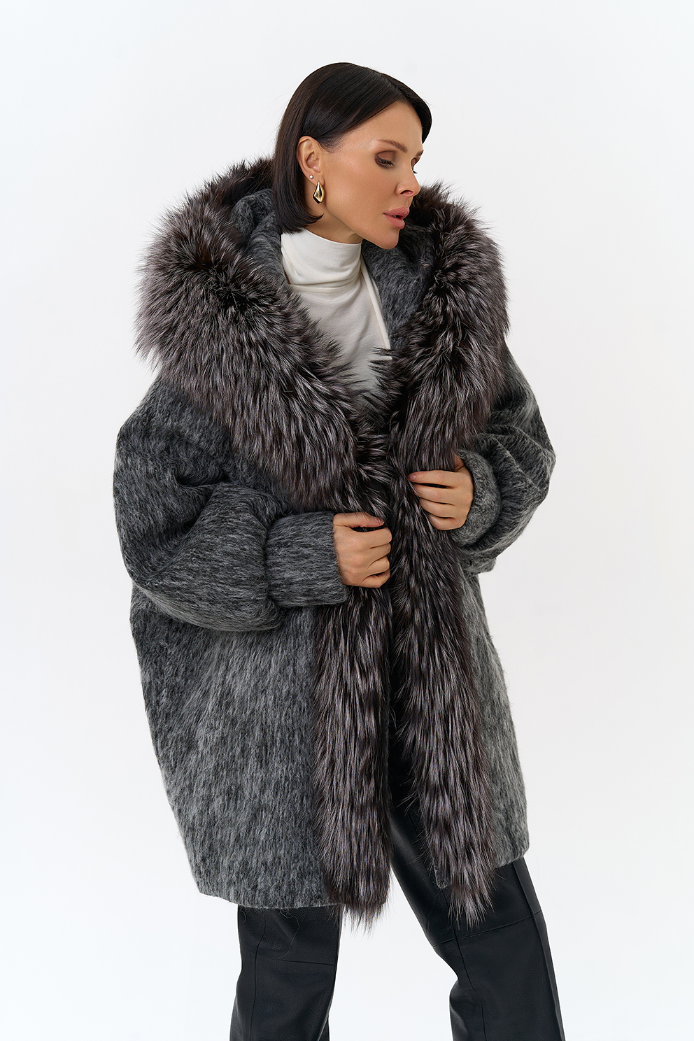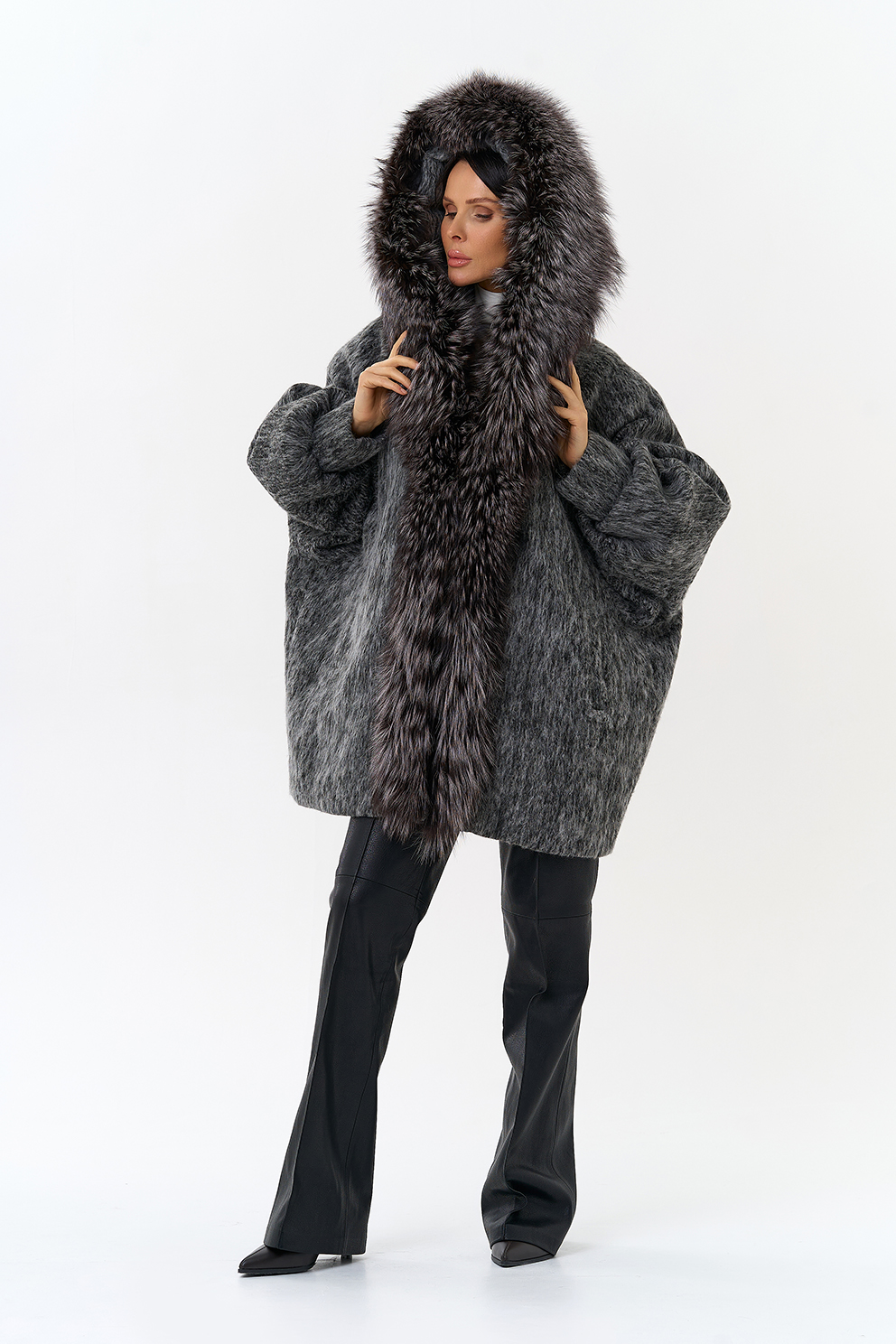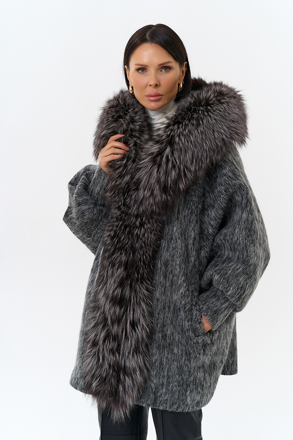 Крой воротника - капюшон, отделка чернобурка