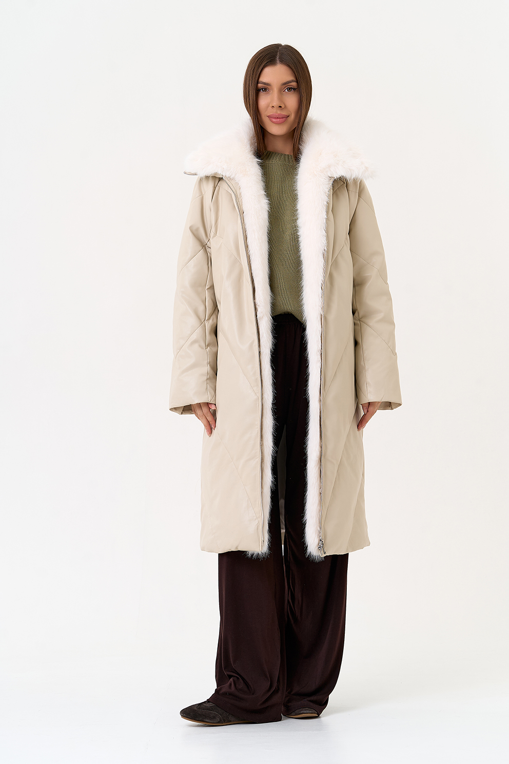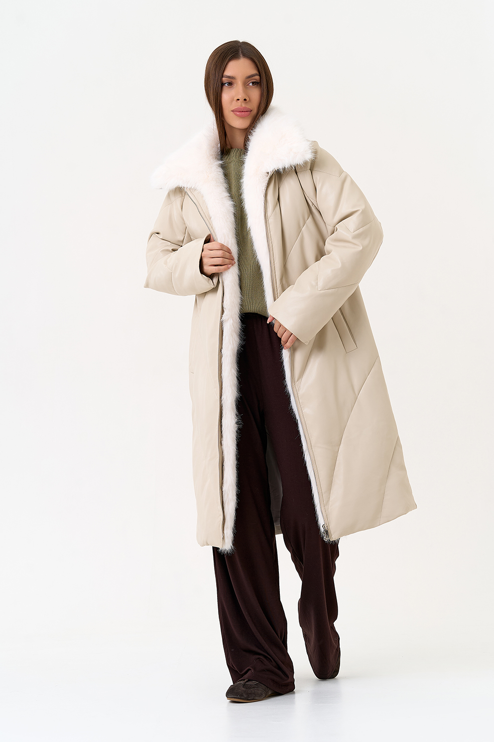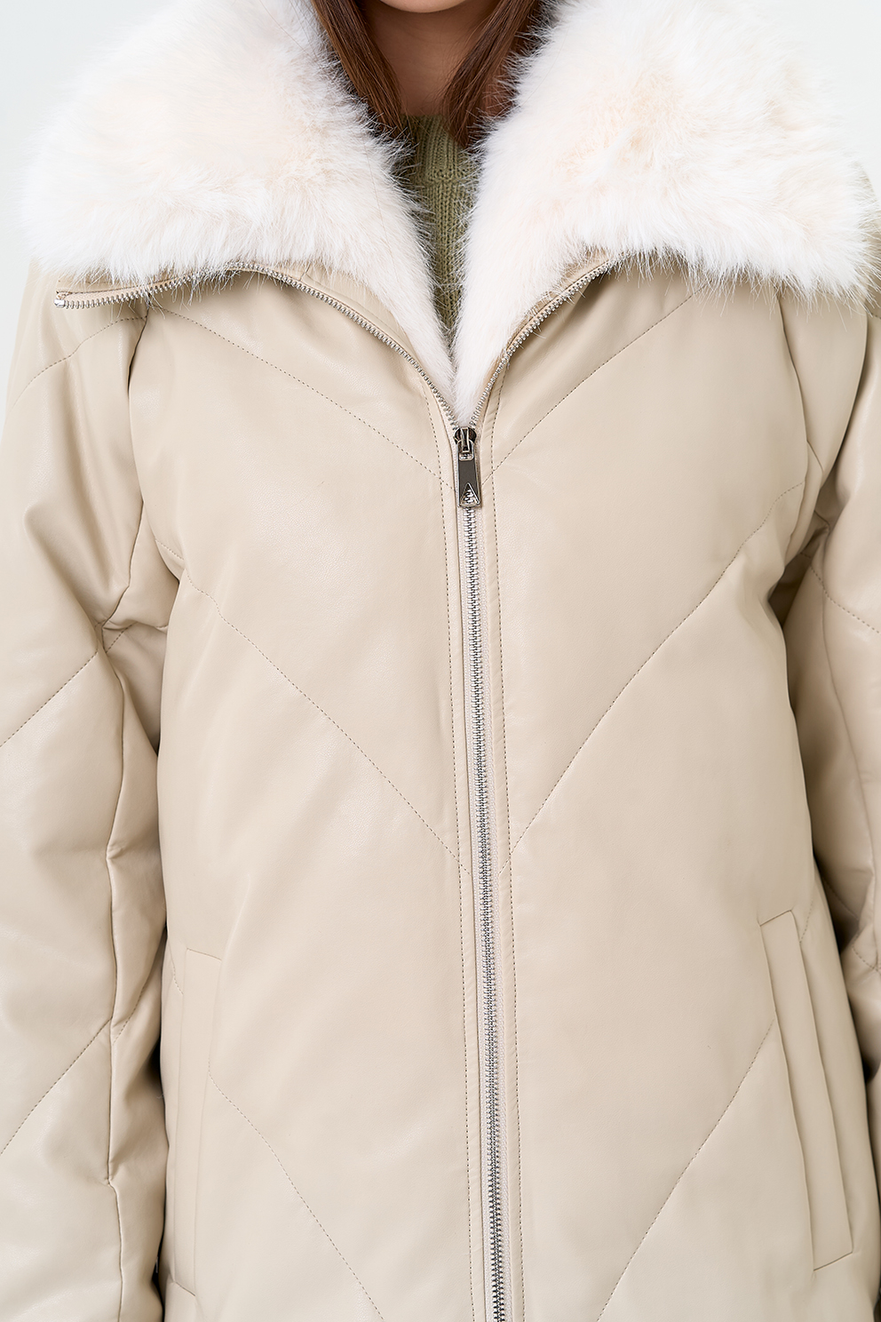 Отделка воротника - съемный эко мех, цвет белый