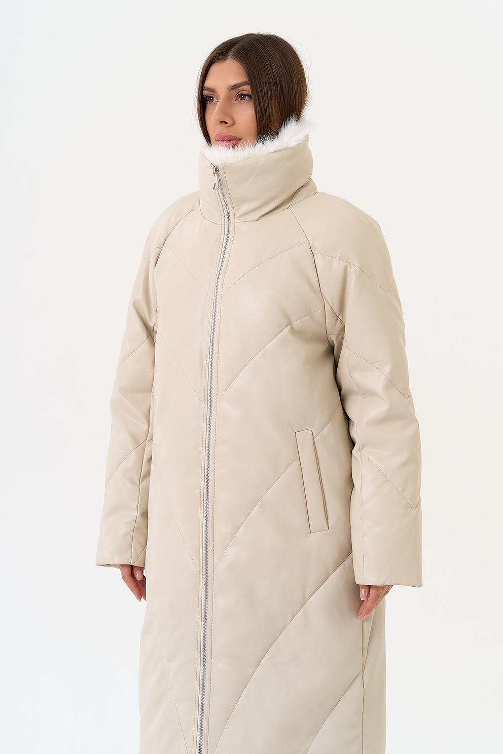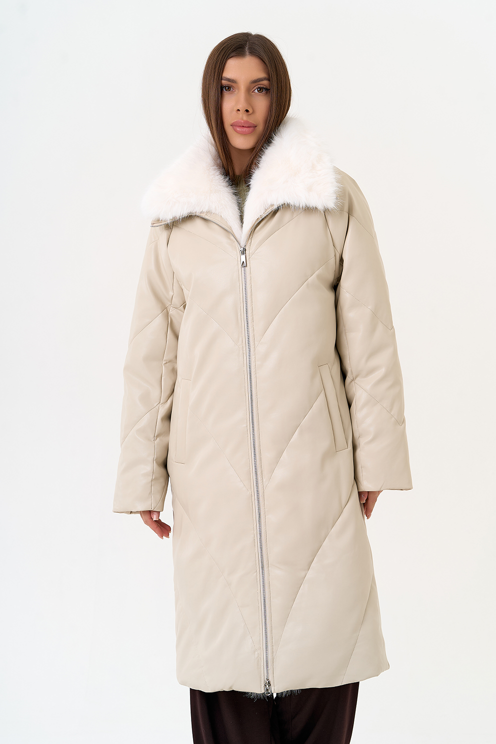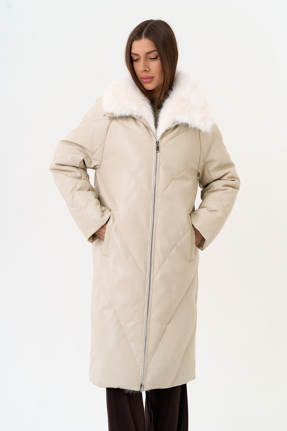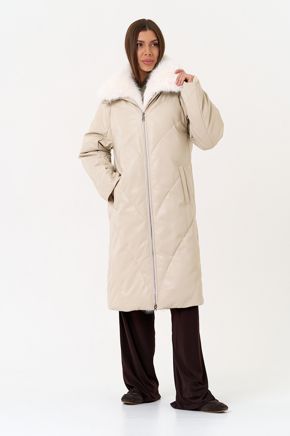 Отделка воротника - съемный эко мех, цвет белый